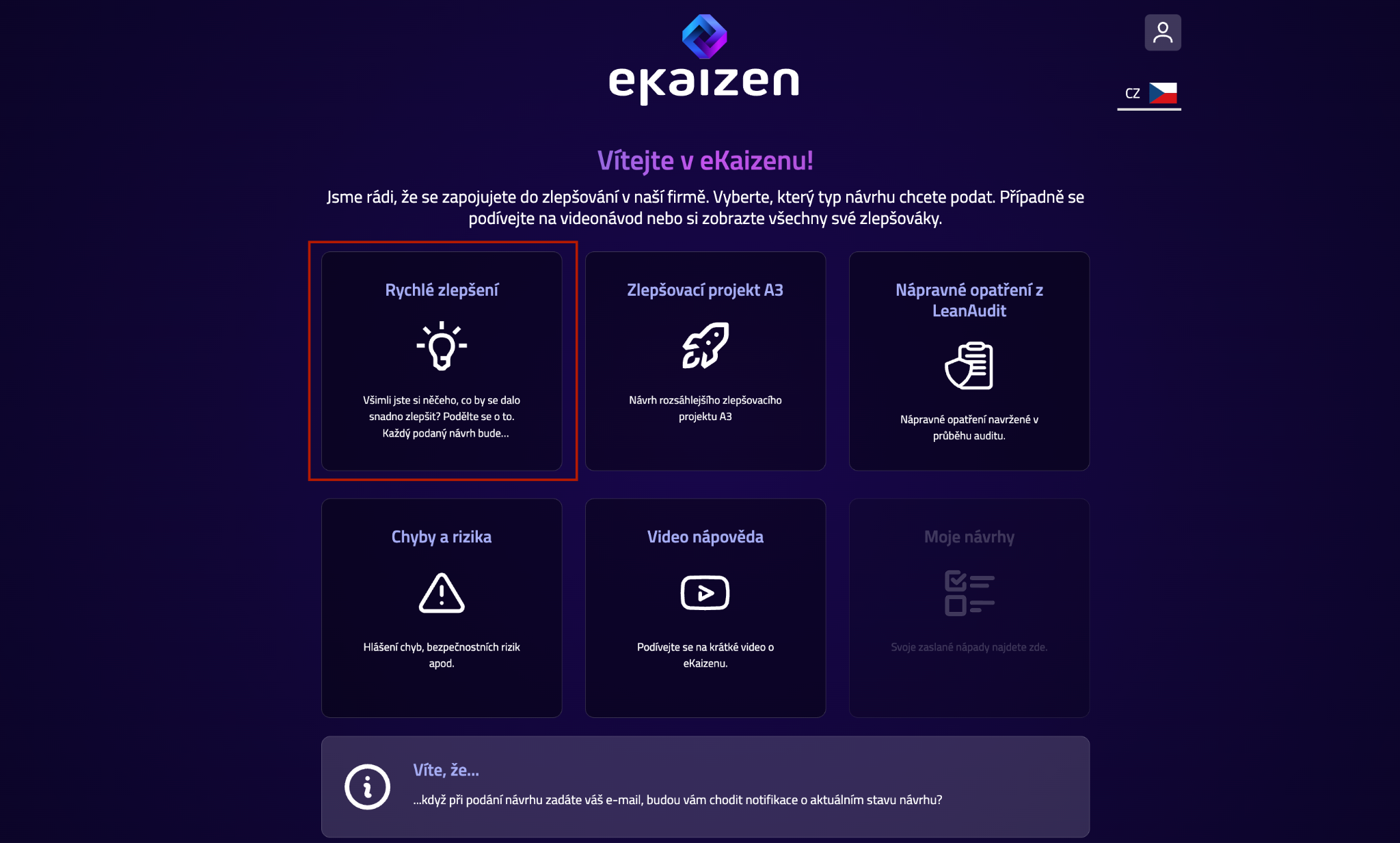 V eKaizenu má každý odeslaný návrh přiřazený typ projektu. Obvykle (ale ne nutně) ho volí autor při podání. Typ projektu ovlivňuje jeho celý životní cyklus - jaké informace se sbírají, jaké úkoly a a…