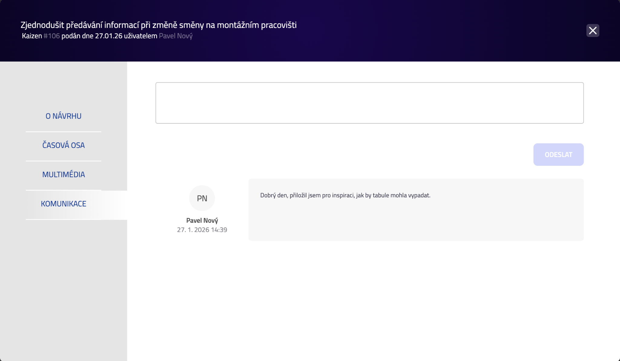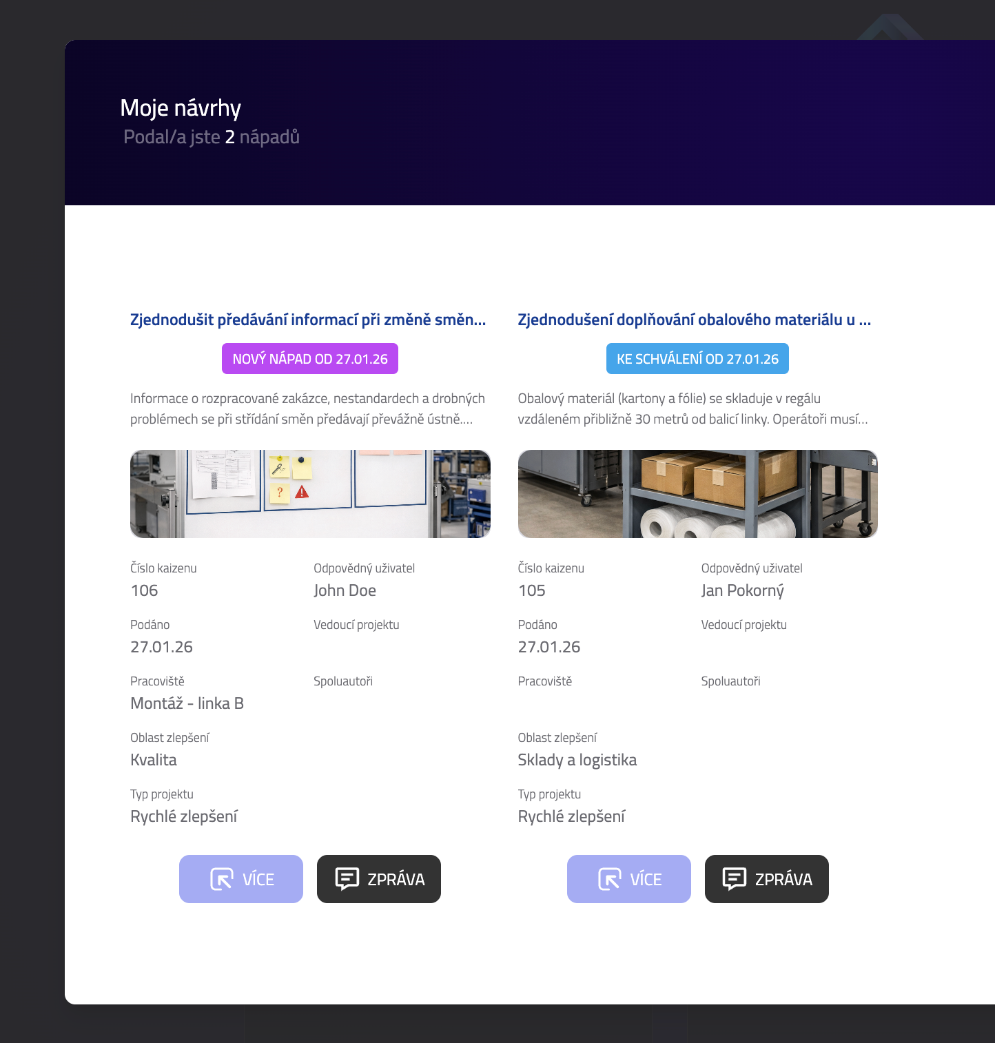 Moje návrhy (portál eKaizen)