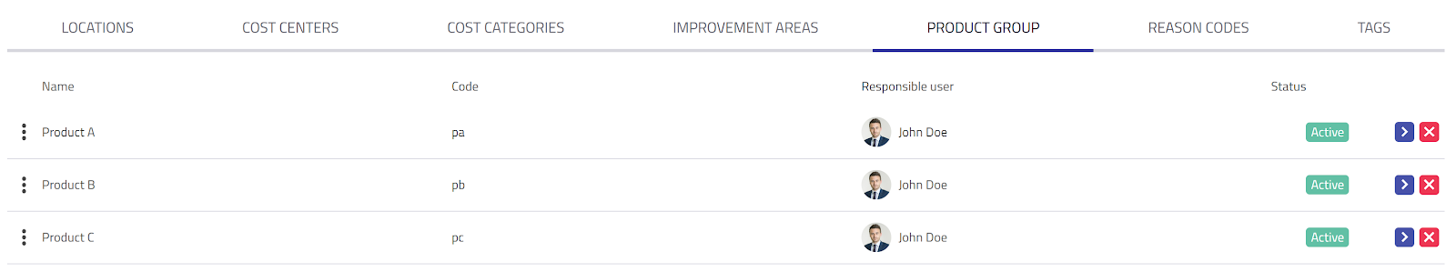 For most classification parameters (e.g., Locations, Improvement Areas, Custom Label Category, and others where available), you can assign a responsible person to an individual value.