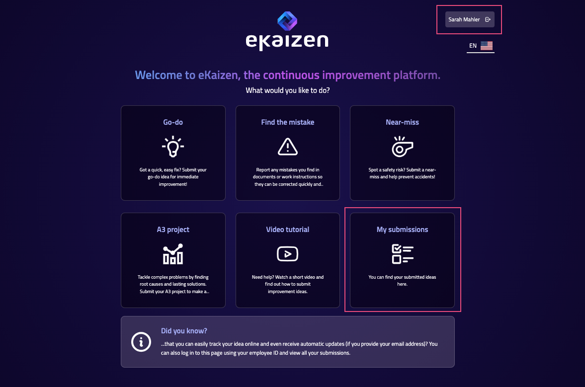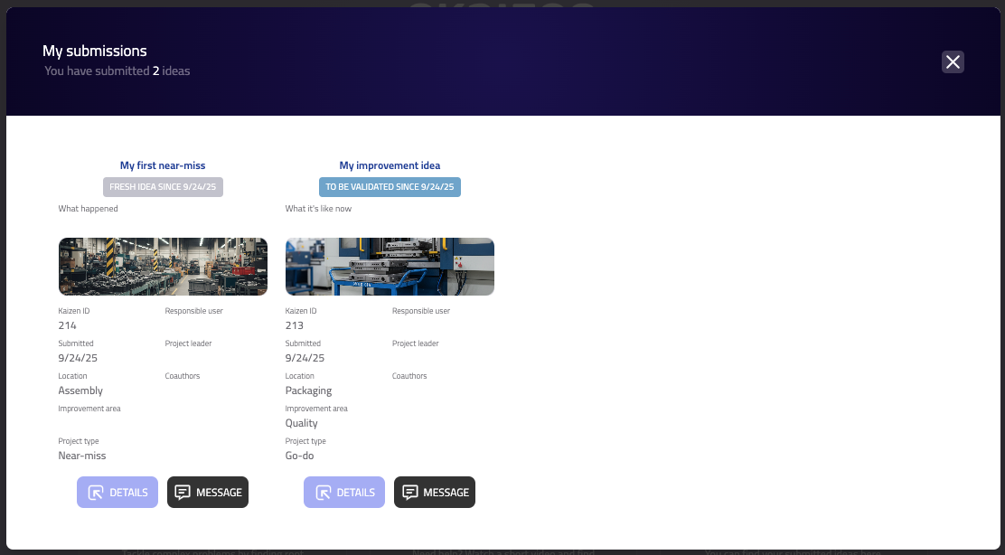 Submitting an idea is just the first step. eKaizen makes it easy to follow what happens next and stay involved. Access after submission. After submitting, you’ll immediately see a confirmation page w…