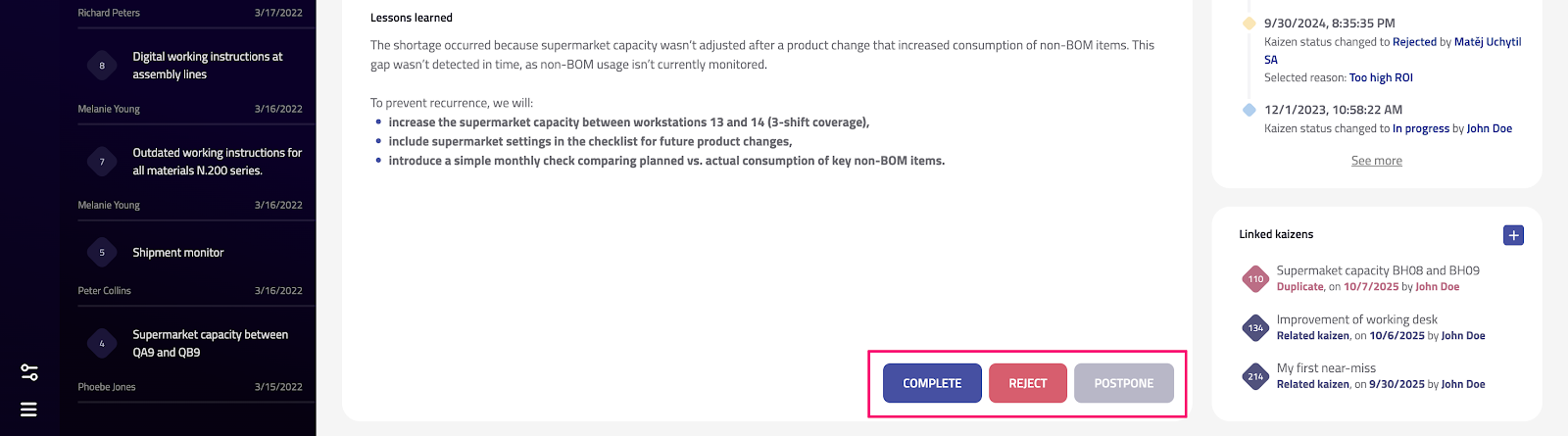 Tags | You can assign one or multiple tags to each project for advanced categorization and filtering. Tags are predefined and managed in eKaizen Preferences. |